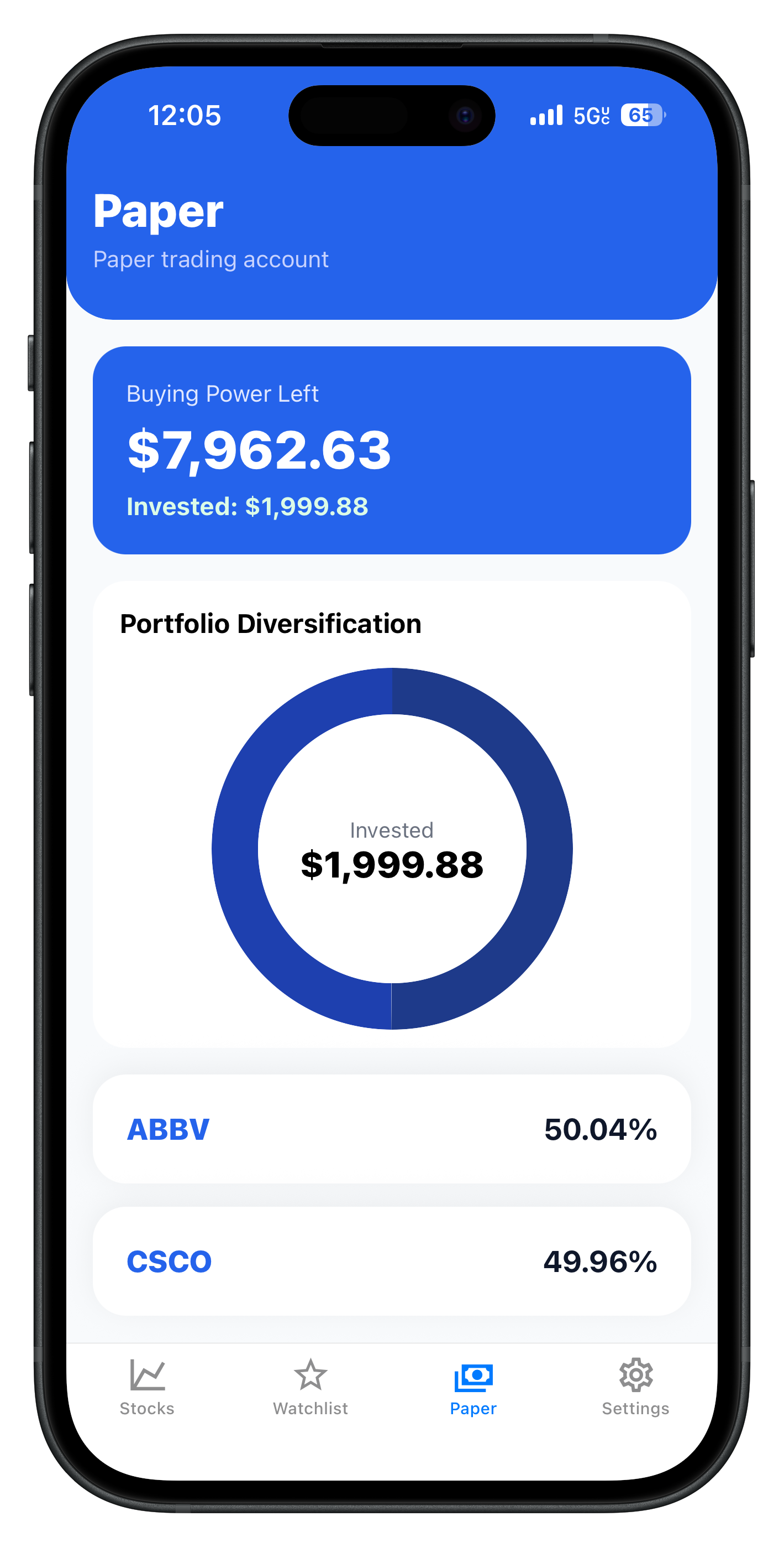 Practice real-world investing using virtual capital and live market data. AMSON’s paper trading account lets you simulate trades, monitor your buying power, and track portfolio performance — without risking real money.